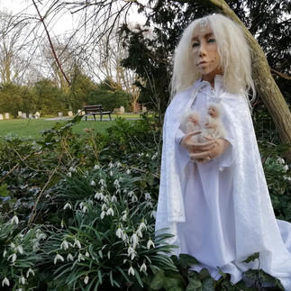 Er fand sich an einem verwunschen wirkenden See wieder und sah eine große weiße Frau mit einem Blick, der ihm sogleich bis in seine tiefste Seele ging. Dieses Wesen strahlte Güte aus und Entschlossenheit, tiefes Wissen um Alles, und Klaus fühlte sich seltsam beschützt aber auch auf der Hut. Mit dieser Dame war nicht zu spaßen und so sprach er sie fast ein wenig eingeschüchtert an - wäre doch nur Klarissa an seiner Seite, sie hätte sicher gleich die richtigen Worte gefunden.