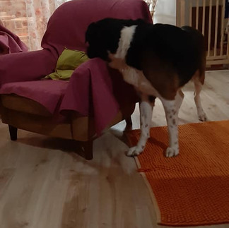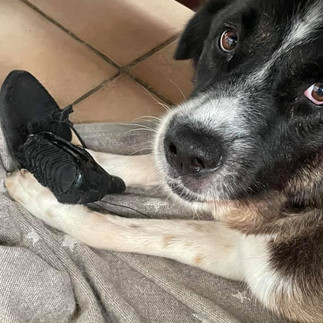 Seitdem liebt er es, Fremde aus dem Haus zu bellen (dabei ist er zum Glück kein Kläffer wie mein alter Reece...) und man merkt ihm seither an, dass er jeden Tag ein wenig mehr ankommt. Er liebt es, wenn man Blödsinn mit ihm macht - wie ein kleines Kind lacht er, wenn man unter dem Tisch kuckuck mit ihm spielt und dann laut lacht - auch wenn wir für Außenstehende vielleicht seltsam sind - diese Momente bringen unglaublich viel Glück ins Haus.